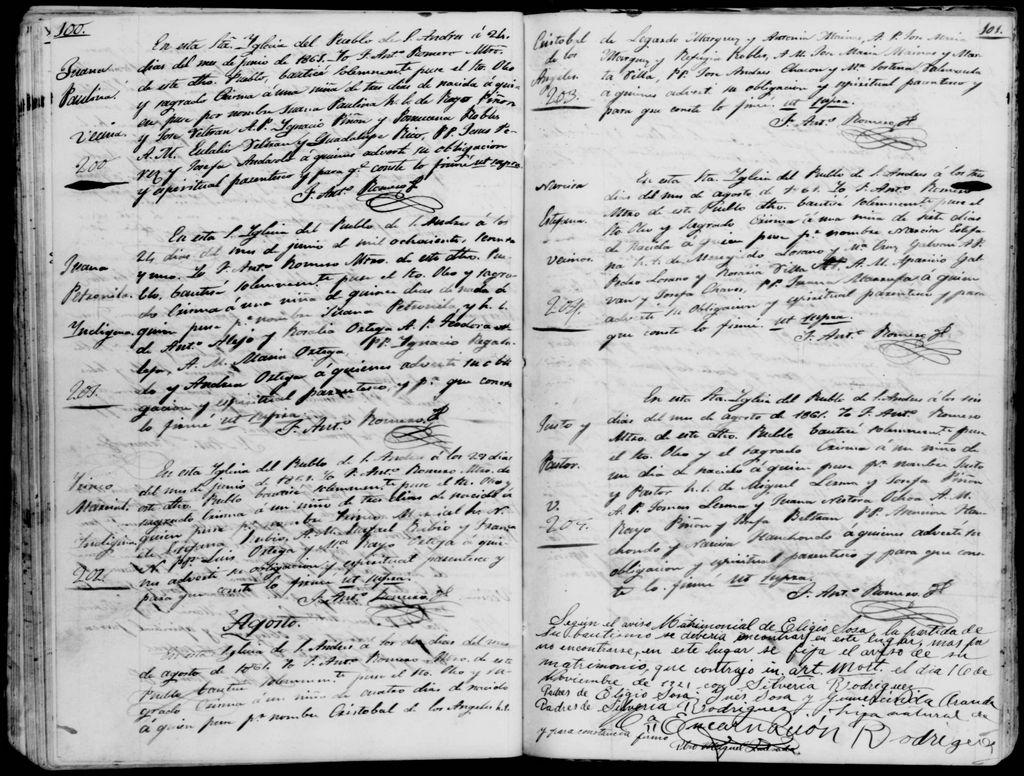- He witnessed the marriage of Jose Arias Márquez and María Felícitas Baquera Allala on 19 January 1871 at Misión de San Andrés, San Andrés, Riva Palacio, Chihuahua, MéxicoG.10