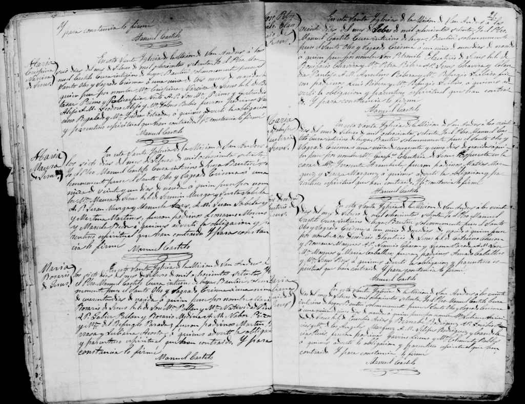 - [S23] Pilot.familysearch.org, Bautizos San Andrés 1868-1874, Bautizo María Ysabel de Jesús Murga Fabela, hoja 40; bautizada a los 10 días de nacida.