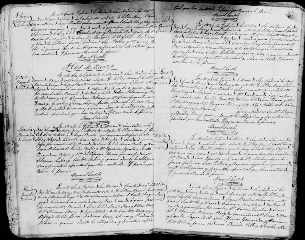- [S68] Matrimonio de Andrés Robles y Francisca Cereceres, Parroquia de San Andrés, 21 Aug 1897: el registro menciona el nombre de los padres.
