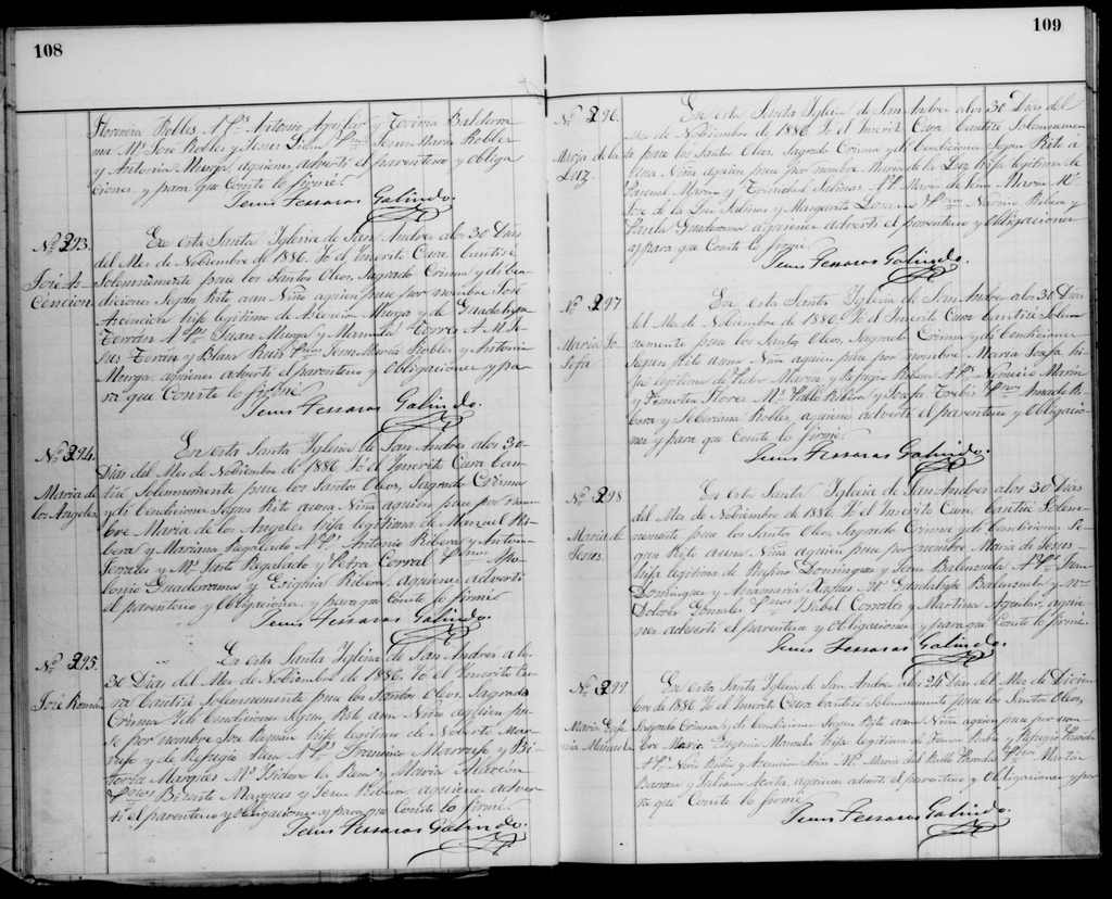 - [S23] Pilot.familysearch.org, Bautizos San Andrés 1868-1874, Bautizo María Maura de Jesús Murga Fabela, hoja 21.