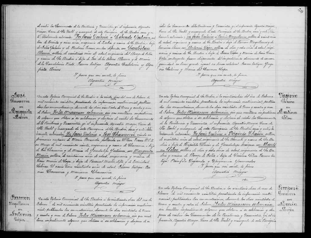 - [S58] Matrimonio de Sixto Mendoza y Dolores Acosta, Parroquia de San Pablo, 28 Feb 1870.