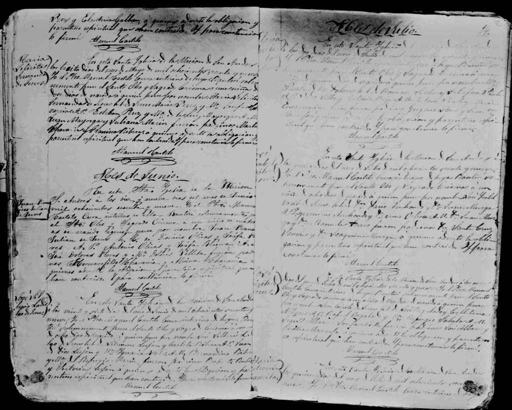 - [S71] Bautizo de María Anastasia González Mendoza, Parroquia de San Lorenzo, 04 Jun 1911: abuelo materno en el registro de bautizo.