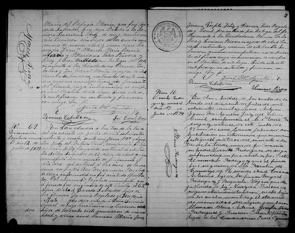 - [S103] Acta de nacimiento de José Ignacio Nieves de Jesús Mendoza Acosta, Registro Civil de Doctor Belisario Domínguez, Chihuahua, 09 Aug 1879.