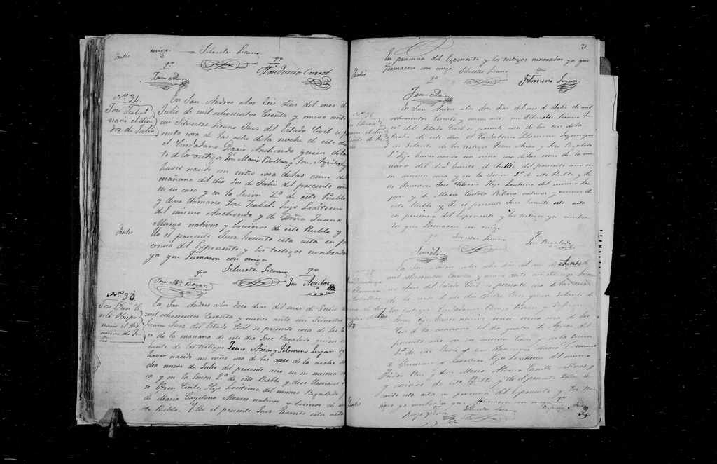 - [S36] Pilot.familysearch.org, Bautizos San Lorenzo 1876-1879, Bautizo Jesús José Antonio Sixto Mendoza Acosta, hoja 74, número 79.